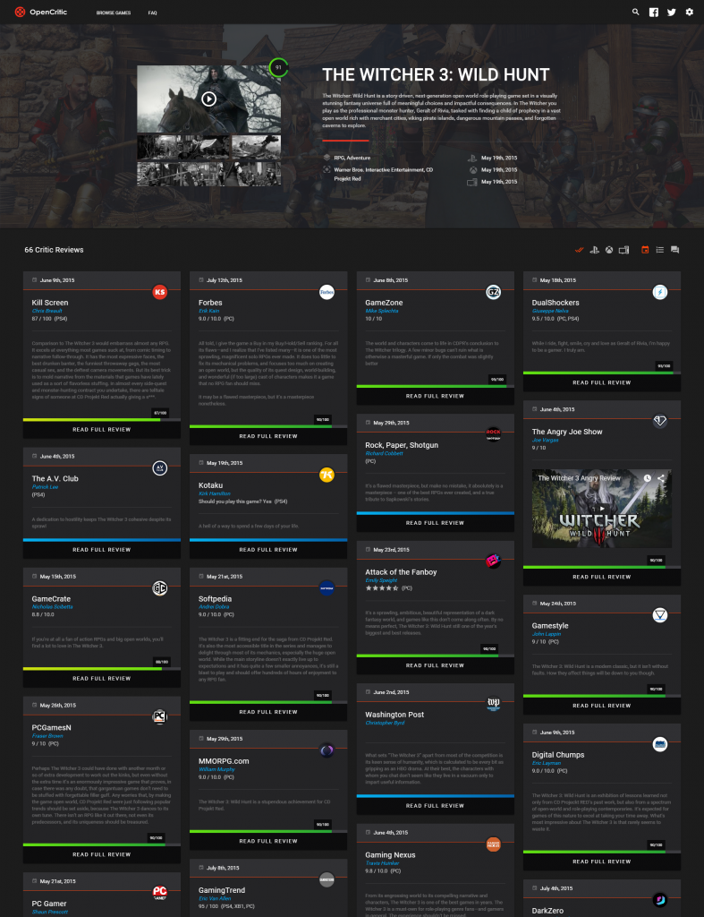 Much of the controversy surrounding the original go-to place for reviews, metacritic, stems from the fact there’s a secret weighting algorithm that alters how much influence certain sites have on the overall score. This secrecy is likely to prevent larger outlets and publishers from influencing the scores, but also throws into question the legitimacy of how metacritic operates. OpenCritic not only hopes to remain transparent about how things are scored, but also that their focus on gaming only (as opposed to film, TV and games and music) will mean more value to gamers.